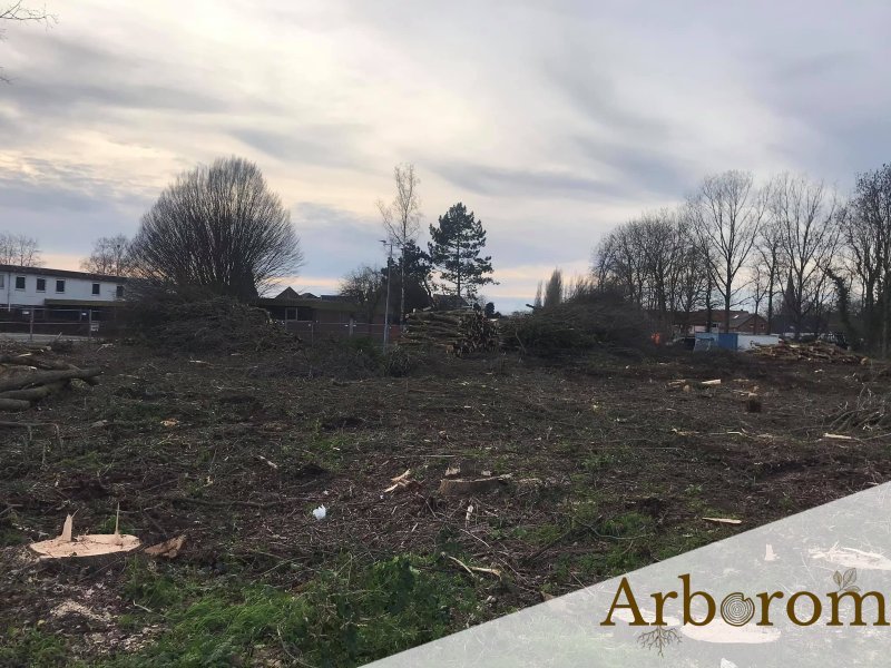 - Abattage de tous les arbres présents sur le terrain par notre équipe de bûcherons