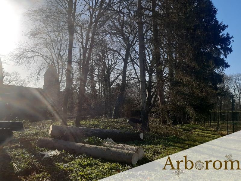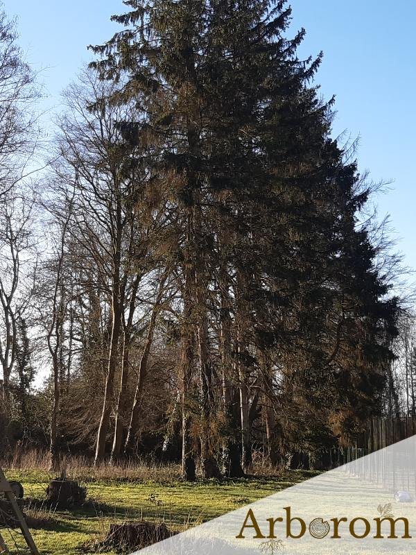 Déboisement d’éclaircie dans le sous-bois d’une propriété privée – épicéas et divers feuillus