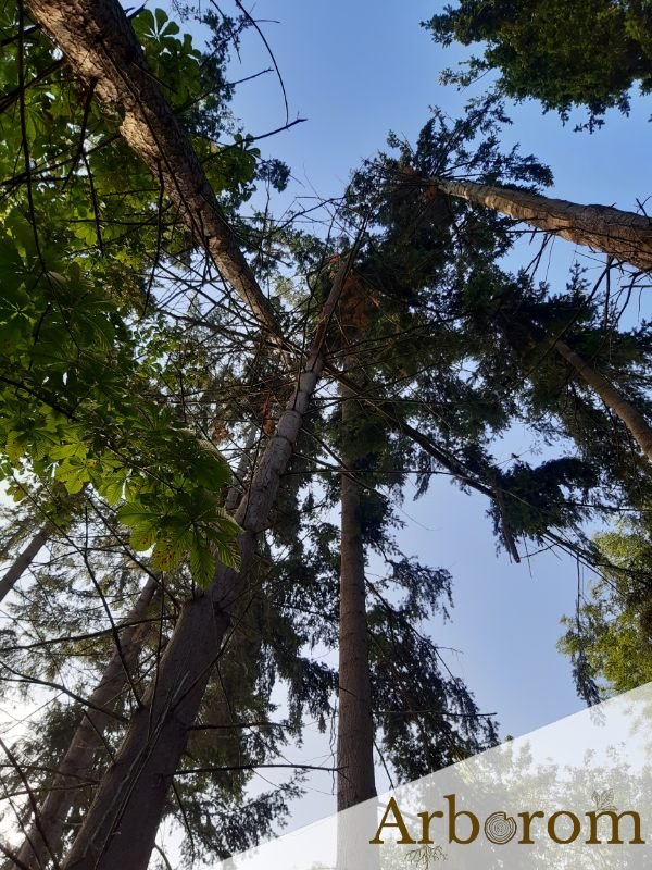 Cet abies a été déraciné par le vent est s’est retrouvé coincé dans un arbre voisin.